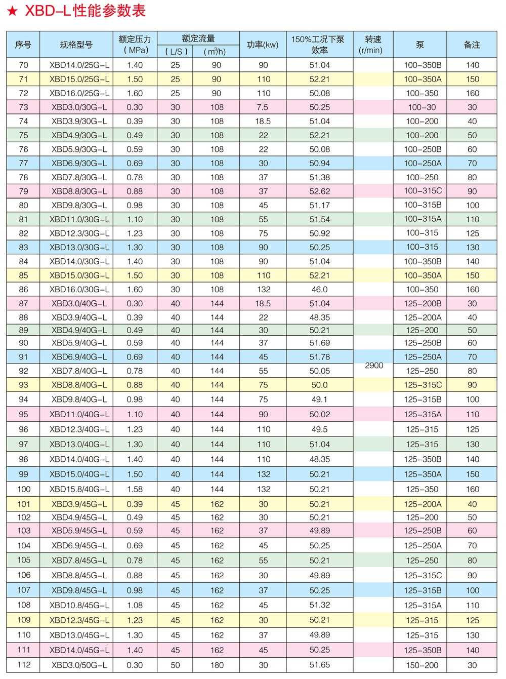 概述XBD-L型立式單級消防泵其性能參數(shù)范圍廣闊,轉(zhuǎn)速為2900轉(zhuǎn)/分和1450轉(zhuǎn)/分兩種,流量1.8-110L/s,揚程16-125米。該系列泵為了提高防腐、防銹性能,過流部位均采用耐腐材料制作。XBD-L型立式單級消防泵供吸送常溫清水之用廣泛用于消防,亦可用于工廠,礦山和城市供水,增壓系統(tǒng)和加熱冷卻系統(tǒng)、農(nóng)田灌溉等。本產(chǎn)品執(zhí)行標準:JB/T6878.2-1993管道式離心泵技術(shù)條件GD6245-2006消防泵